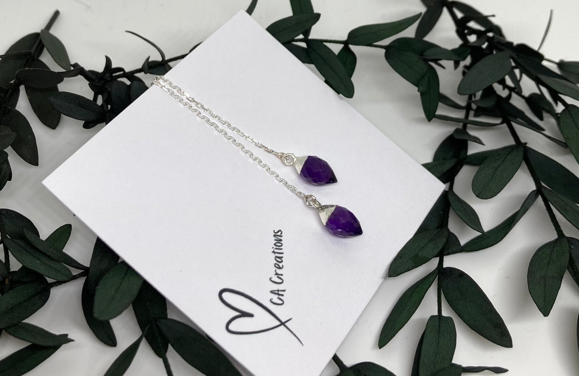 Add an elegant pop of color to your look with these stunning Amethyst Marquis Threader Earrings. Each earring features a faceted marquis-cut amethyst gemstone, showcasing deep purple hues and brilliant light-catching facets. The stones are capped in a sleek silver setting and suspended from a delicate threader-style chain for a modern, graceful silhouette.