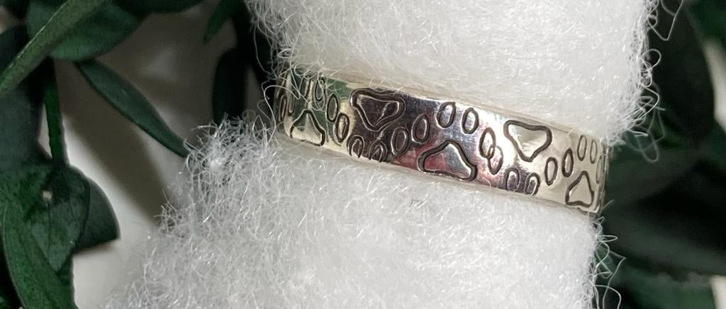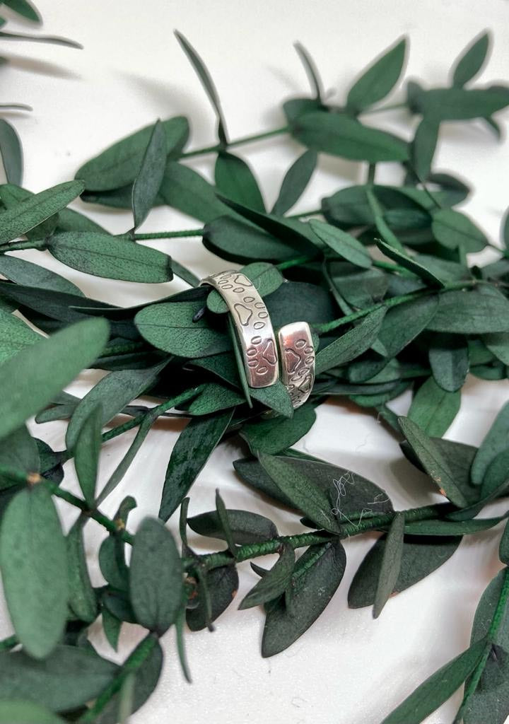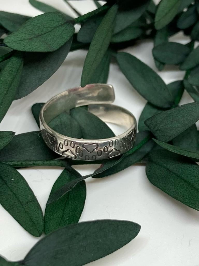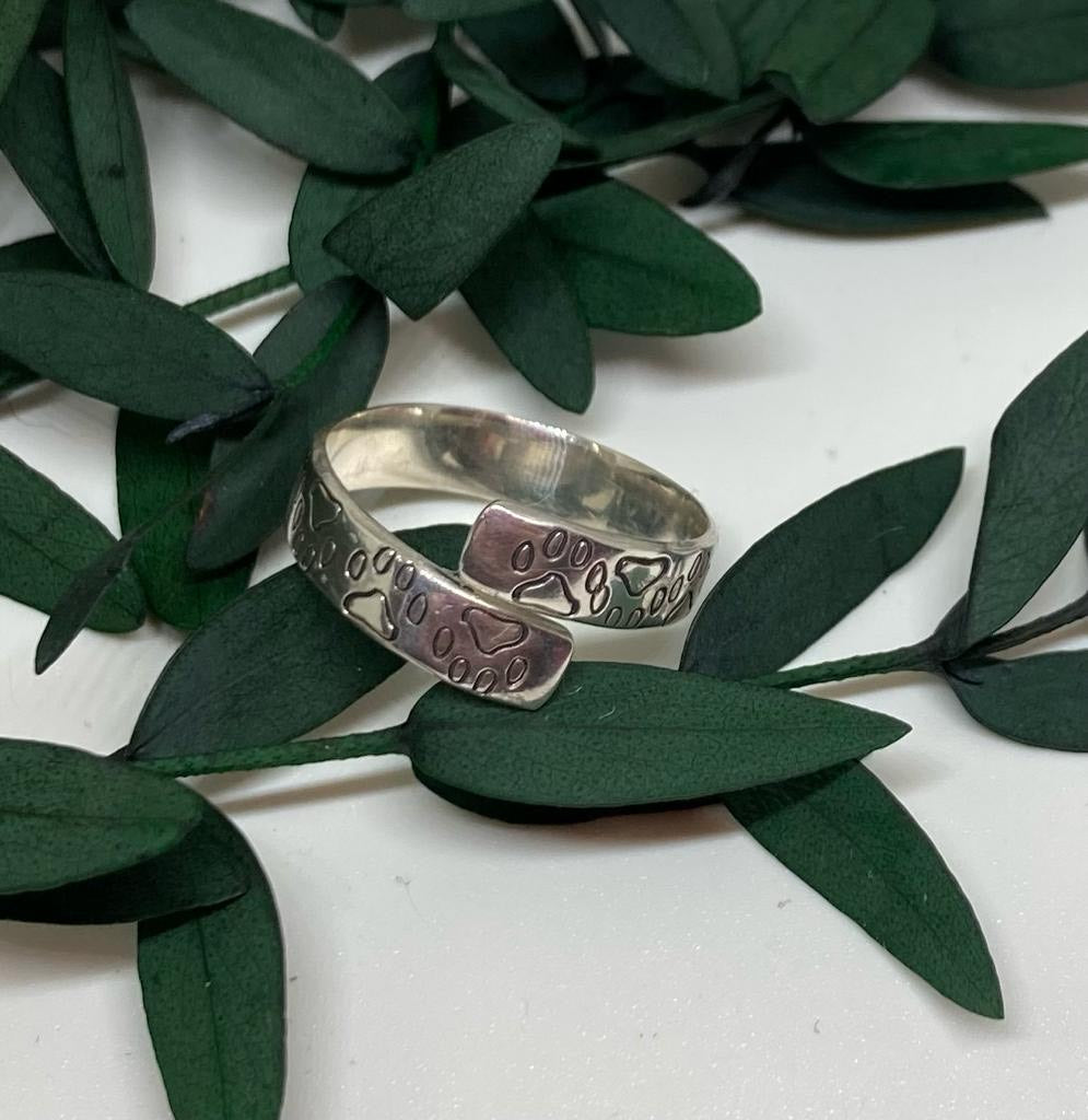 Pet lovers will love this dog paw print open ring in sterling silver.