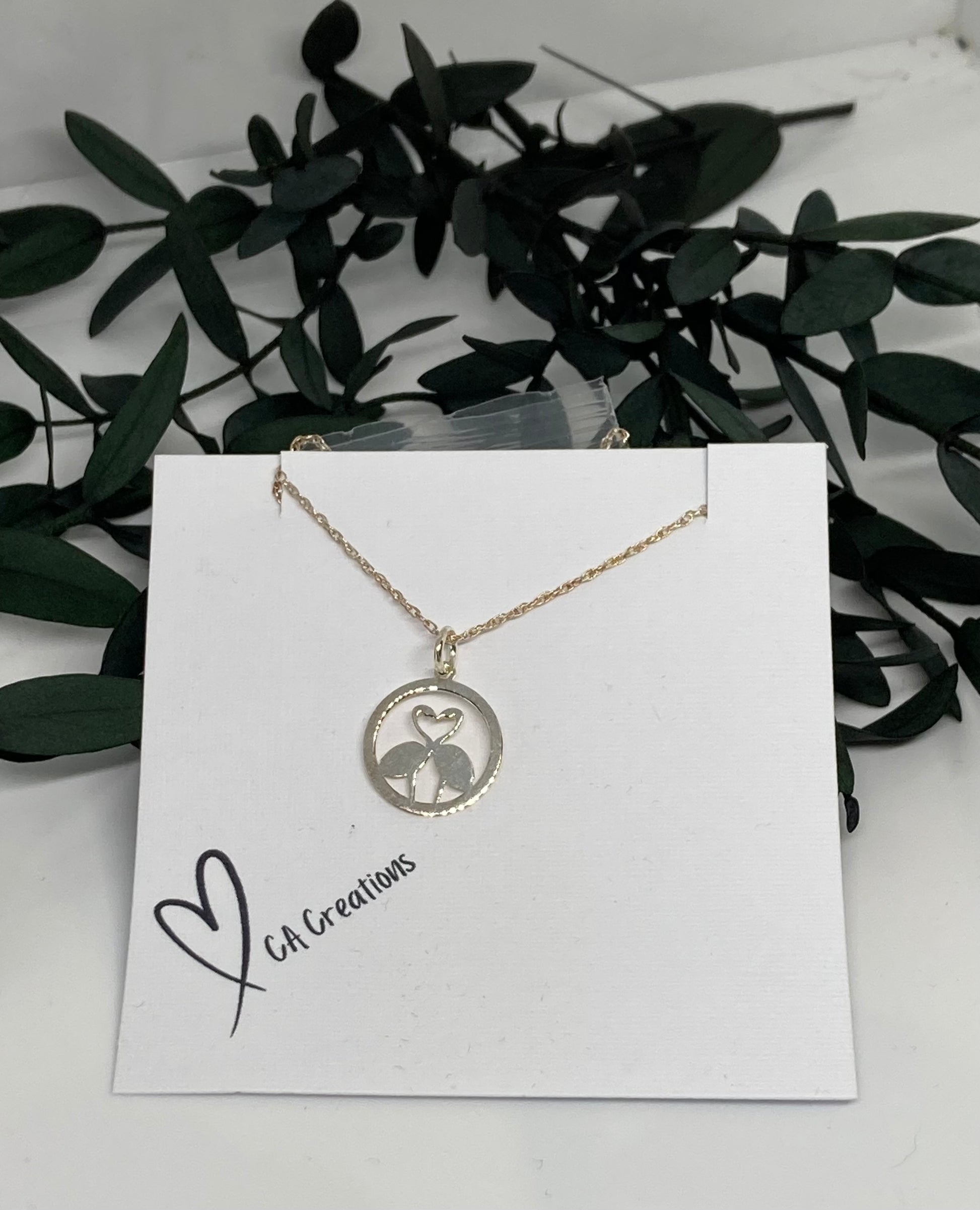This petite flamingo pendant is just 1.3cm across and hangs from a delicate 16 inch sterling silver chain.