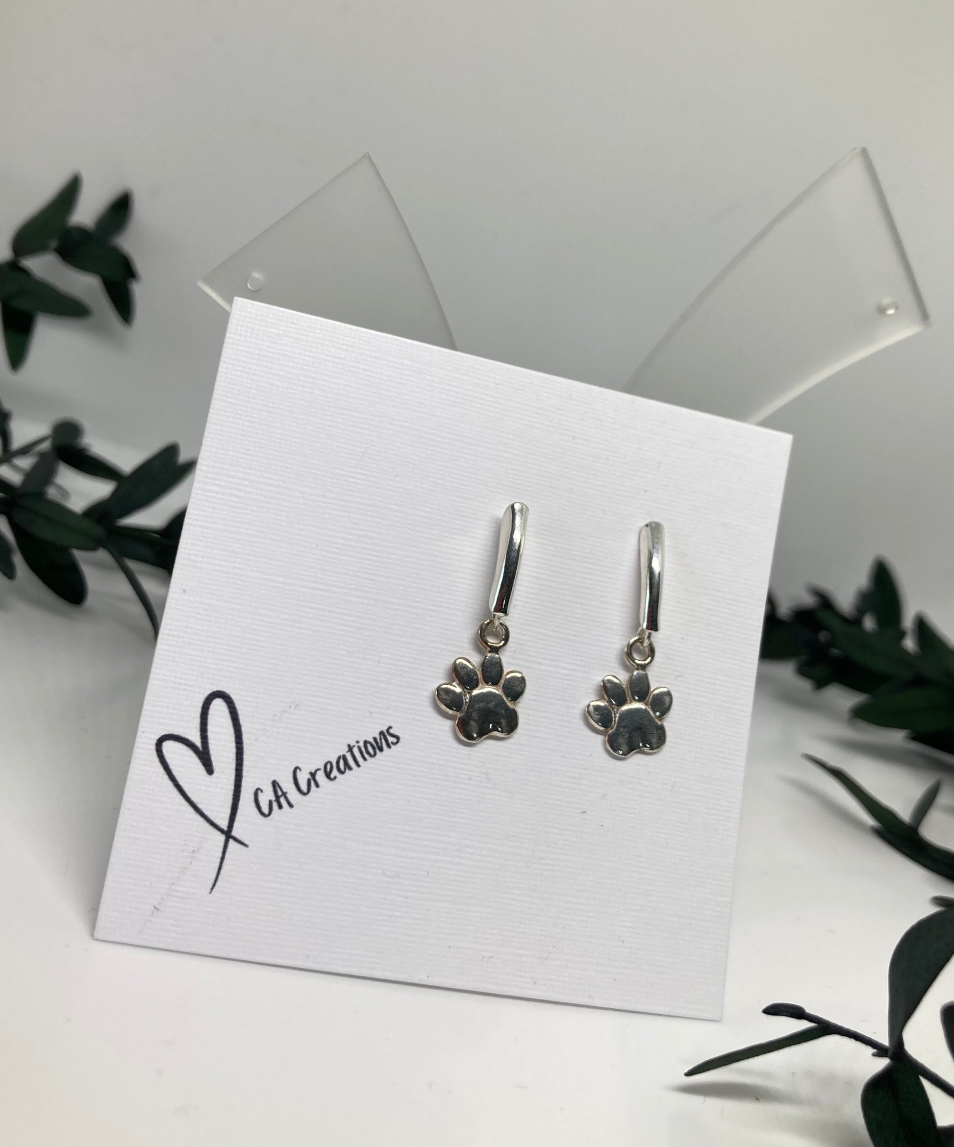 The paw charms are 1cm across and the earring are 2.5cm in length.