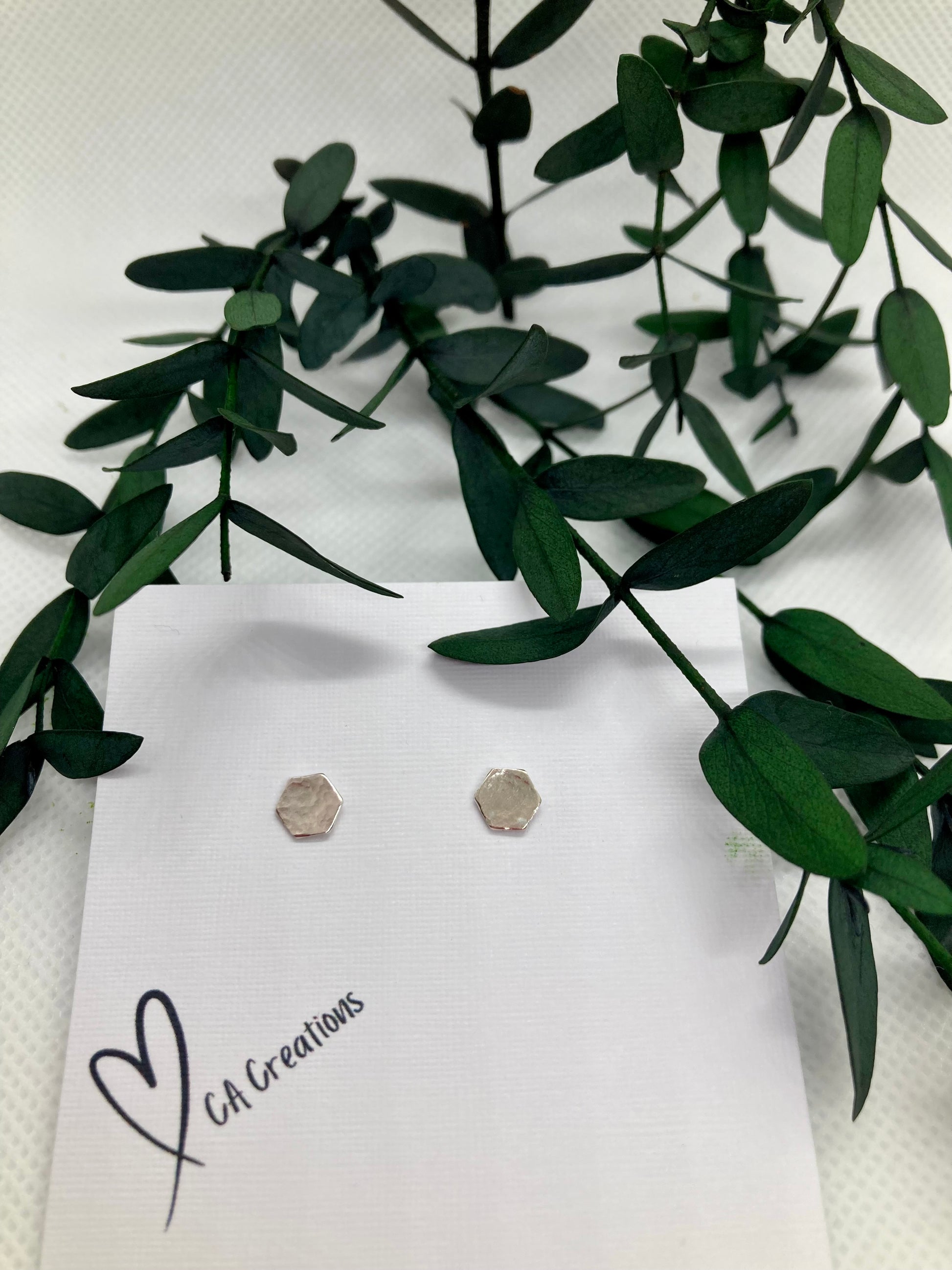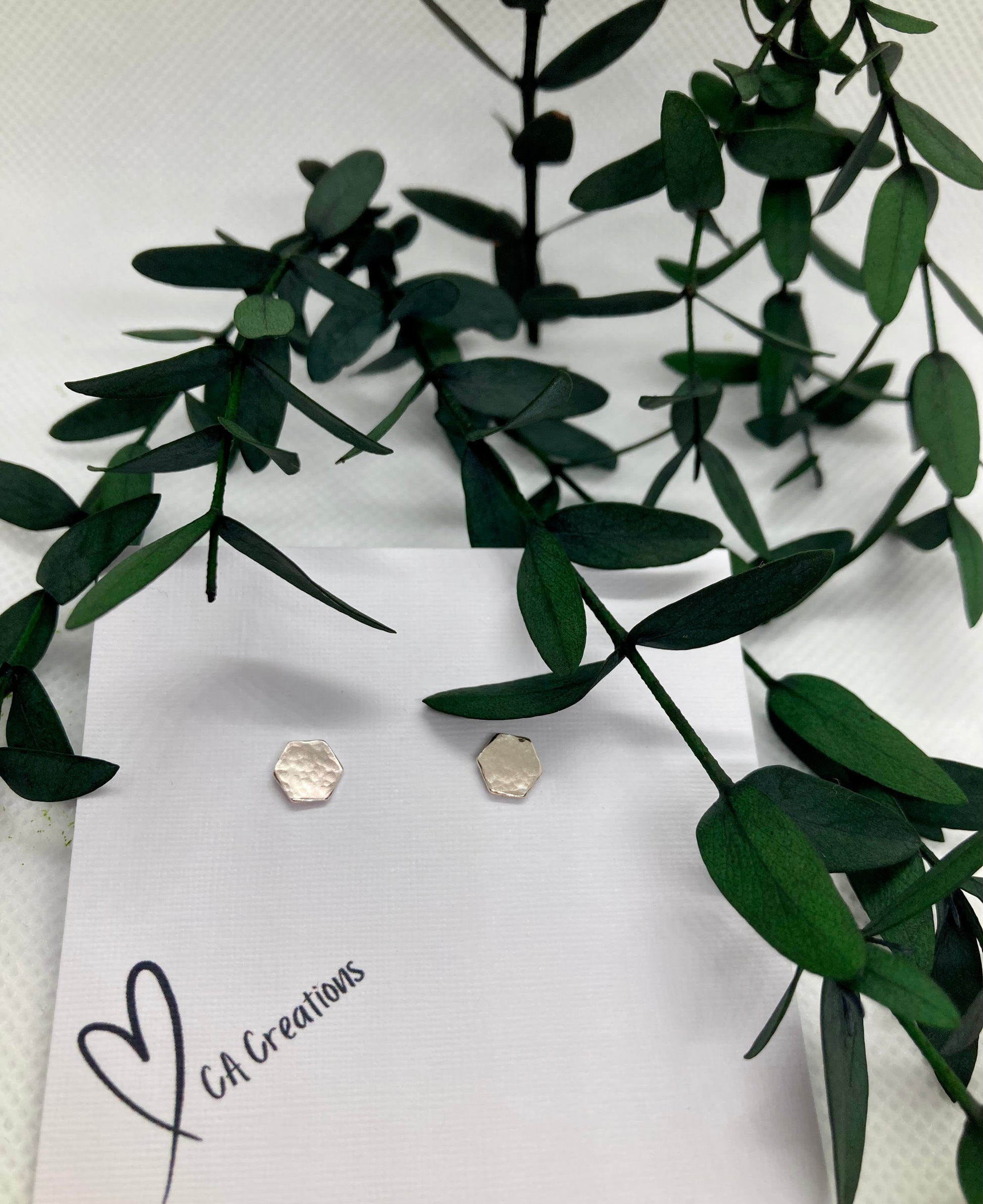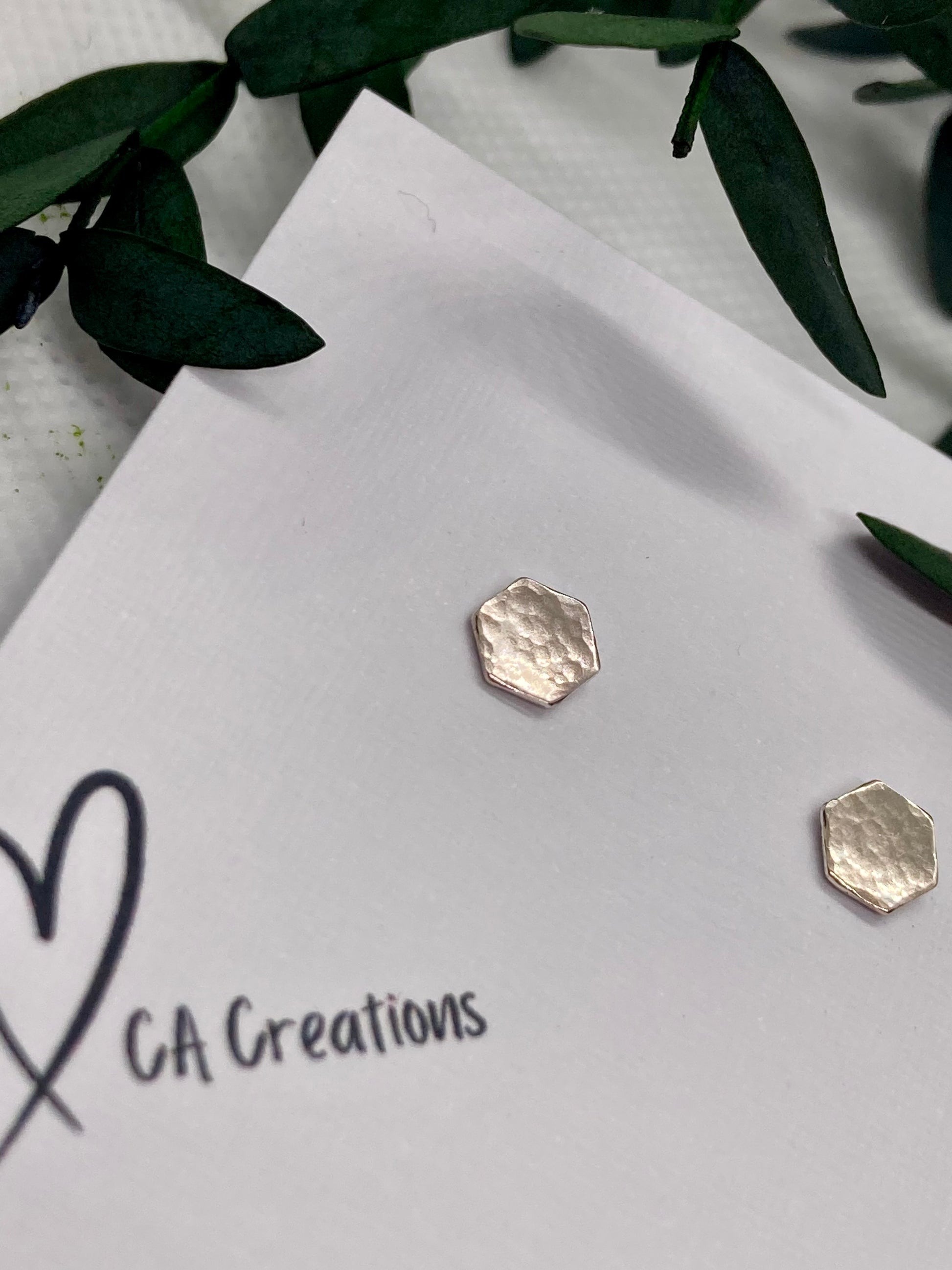 Tiny hexagon shaped ear studs with a lightly hammered surface from my Classics range.
